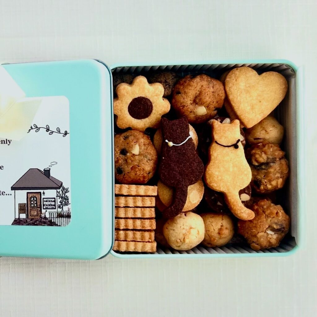 また、オンラインショップでは選べる楽しみも増えました! ミントグリーンのクッキー缶は、イヌ(ブラウン)、イヌ(クリーム)、ネコ、ハリネズミの4種類のアイシングから選択可できるように。 🐈⬛ちゃんは新発売です✨