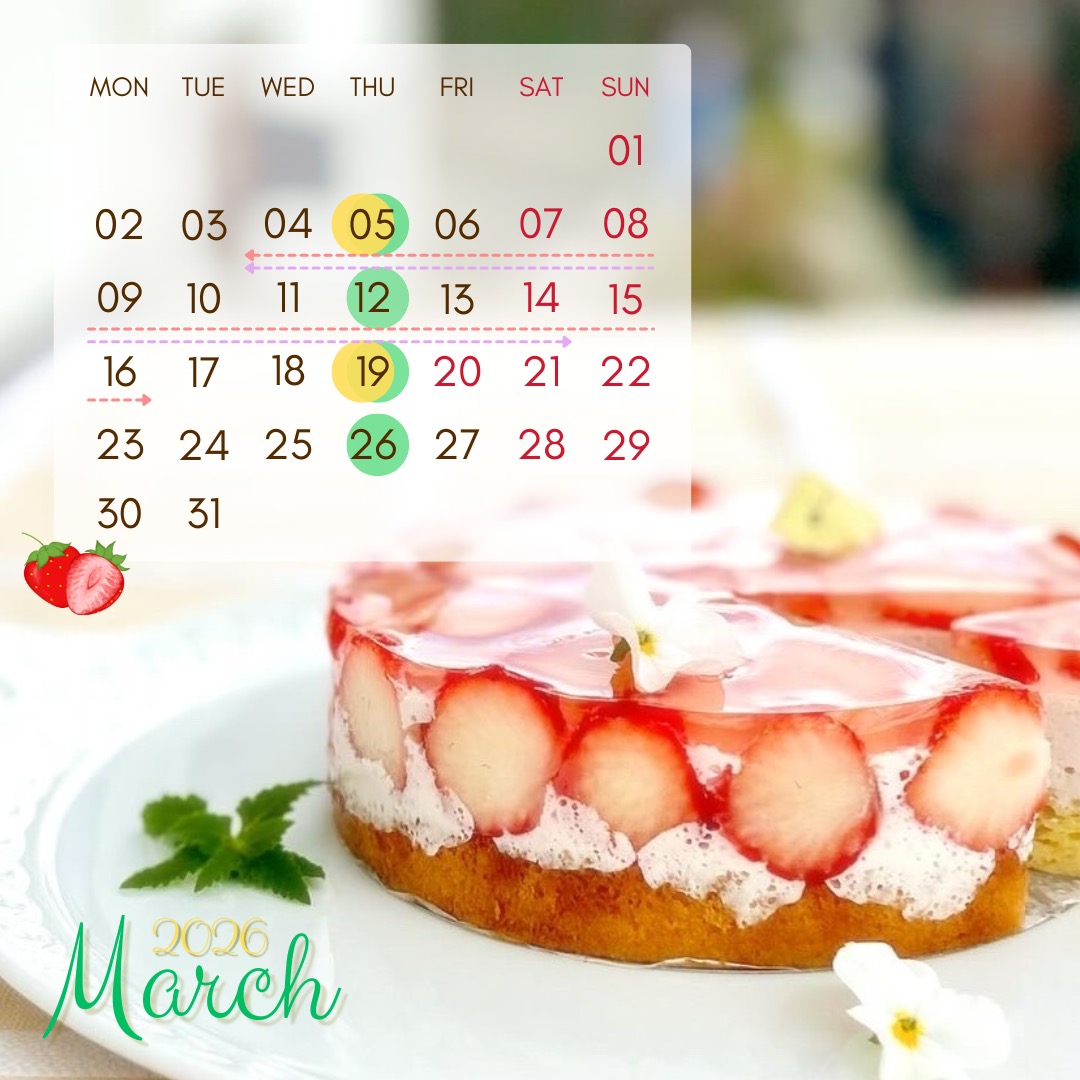 3月になりましたね。寒暖差はありますが、公園の桜の蕾もふくらみ、春の気配を感じるこの頃です🌸 卒業や年度の節目の季節。新たな一歩が、素晴らしい飛躍となりますように✨ 3月のお菓子は「苺のムースケーキ」🍓 旬の苺を生のままゼリーで閉じ込めた、華やかな一品です🍓お祝いの集まりにもぜひいかがでしょうか✨